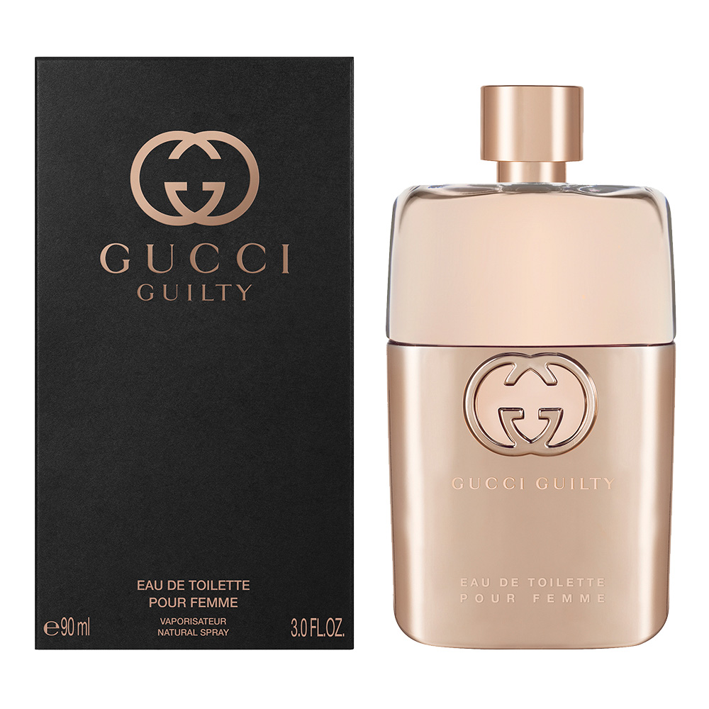 Gucci Guilty Pour Femme створений під натхненням від активності та самодостатності жінок, які вільні у самовираженні. Дизайн флакона, що нагадує чоловічий аналог аромату, уособлює рівноправність жінок і чоловіків.